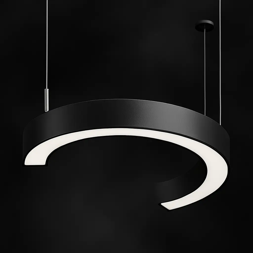 Elevate your workspace aesthetics with our donut ring Pendant Light Downlit Linear Light, designed to bring both style and functionality to modern office environments. This light fixture features a unique donut shape, breaking away from the conventional linear lamps to add a touch of creativity and sophistication. Ideal for offices, schools, hotels, airports, shops, and even kids’ rooms, this pendant light not only enhances the ambiance but also improves productivity with its antiglare light output. The adjustable hanging wire allows you to customize the installation height according to your space needs, providing flexibility whether used as a pendant lamp or ceiling-mounted light. Crafted from premium aluminum with a black powder-coated finish, this lamp is built to last and designed to impress. Equipped with a branded power supply, Acco LED donut ring Linear Light promises reliability and peace of mind.  It is the perfect product for diverse applications. Add this stylish and efficient light to your office, home, or any commercial space and experience a blend of modern design and superior lighting performance.